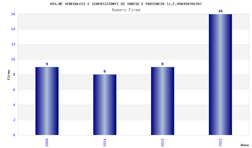 | Anno | Firme | Importi | Media | Naz. | Reg. | Prov. | Comu. |