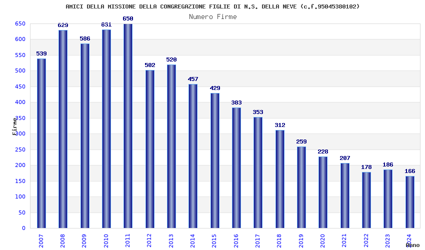 | Anno | Firme | Importi | Media | Naz. | Reg. | Prov. | Comu. |