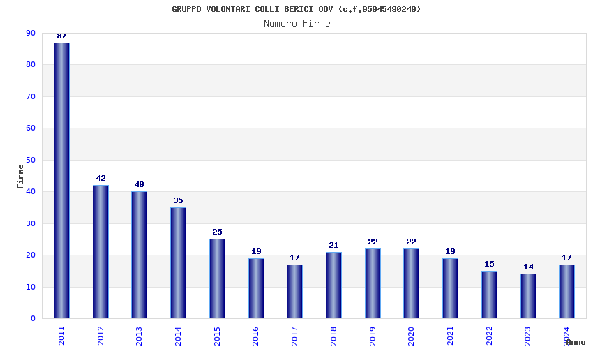 | Anno | Firme | Importi | Media | Naz. | Reg. | Prov. | Comu. |