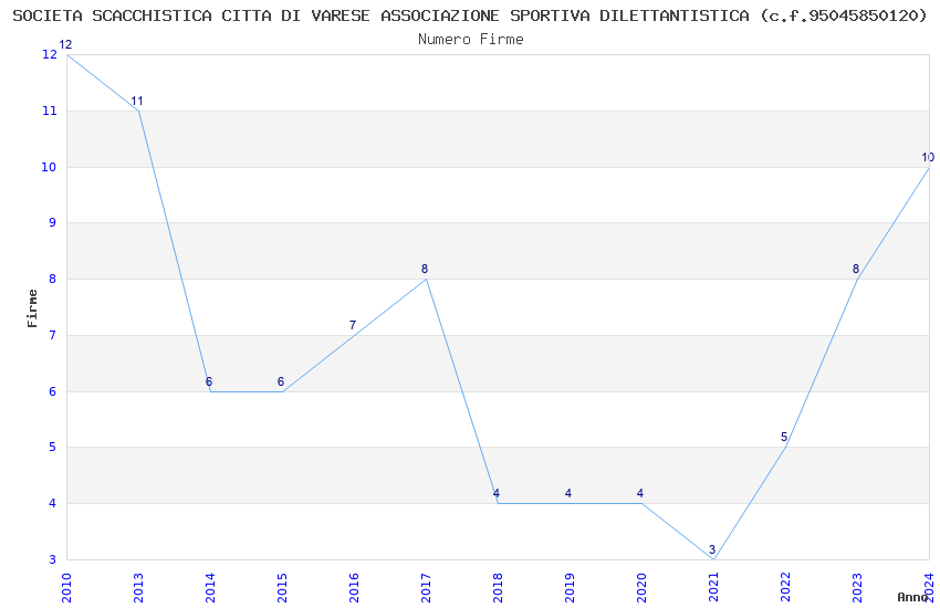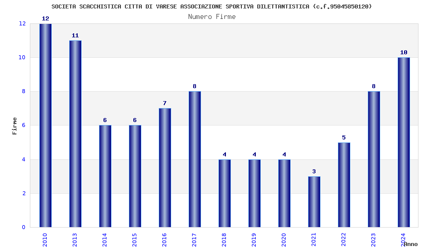 | Anno | Firme | Importi | Media | Naz. | Reg. | Prov. | Comu. |