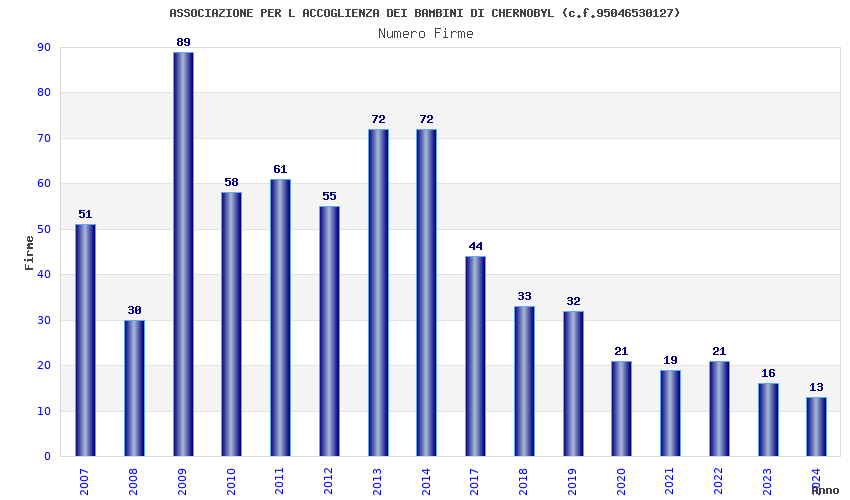| Anno | Firme | Importi | Media | Naz. | Reg. | Prov. | Comu. |