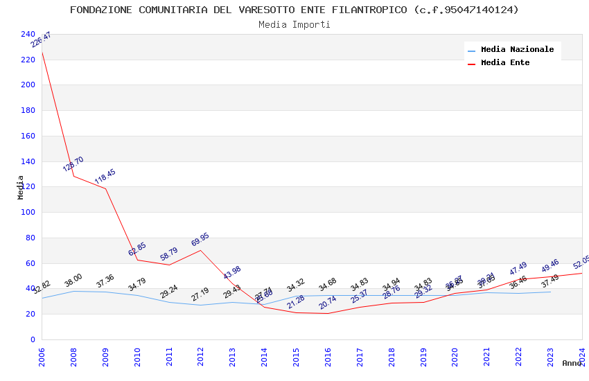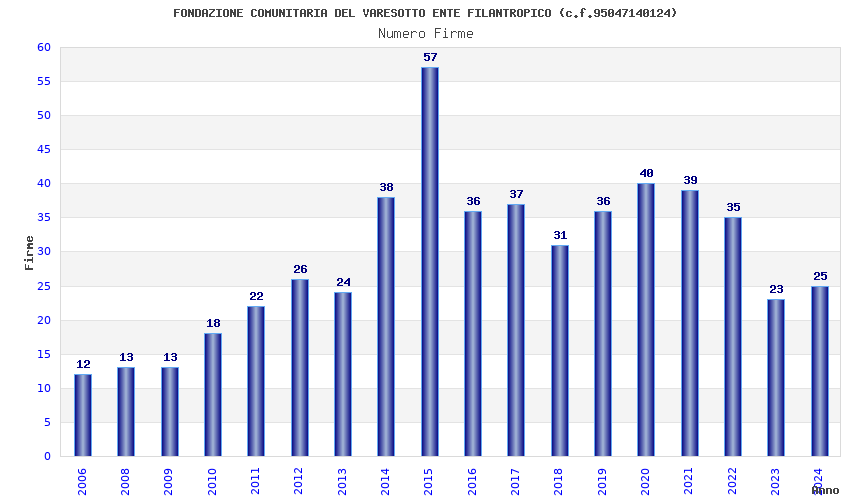 | Anno | Firme | Importi | Media | Naz. | Reg. | Prov. | Comu. |