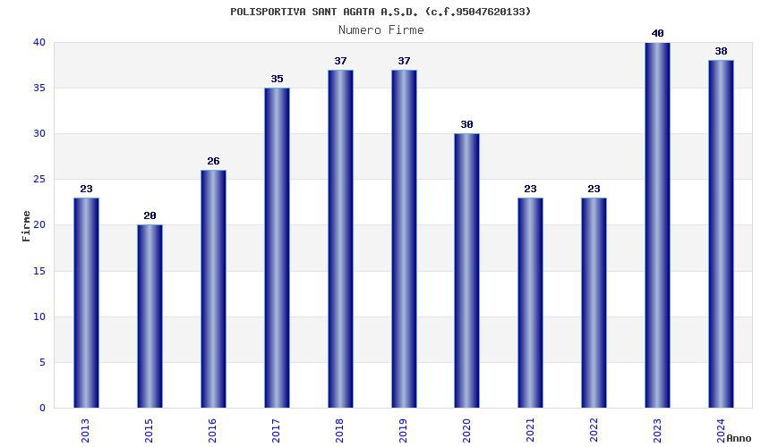 | Anno | Firme | Importi | Media | Naz. | Reg. | Prov. | Comu. |