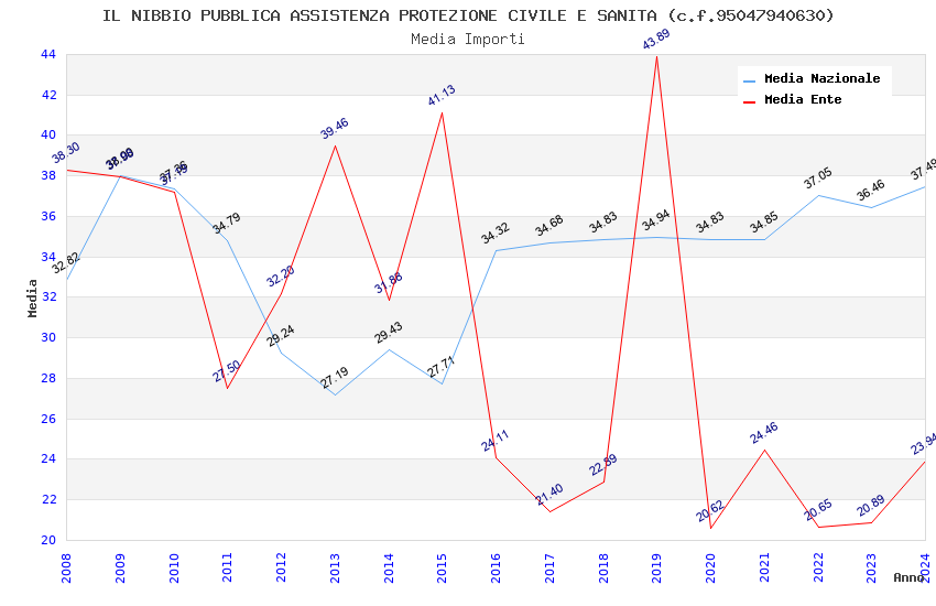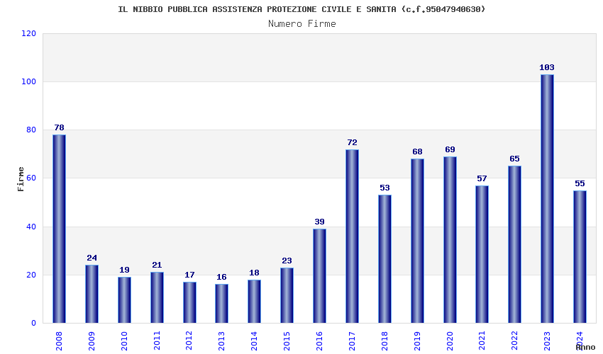 | Anno | Firme | Importi | Media | Naz. | Reg. | Prov. | Comu. |