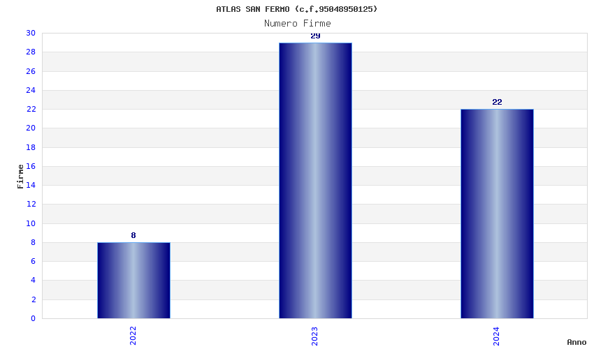 | Anno | Firme | Importi | Media | Naz. | Reg. | Prov. | Comu. |