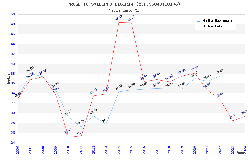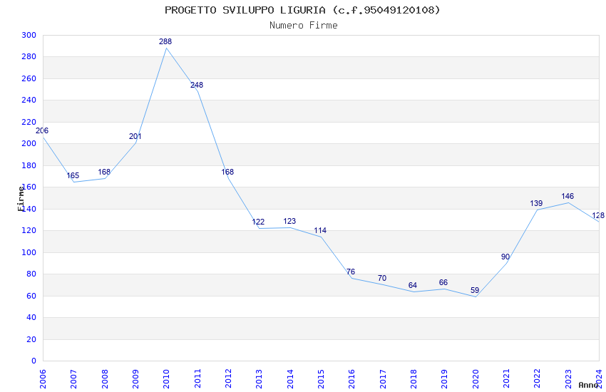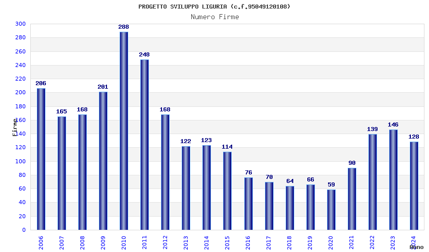 | Anno | Firme | Importi | Media | Naz. | Reg. | Prov. | Comu. |