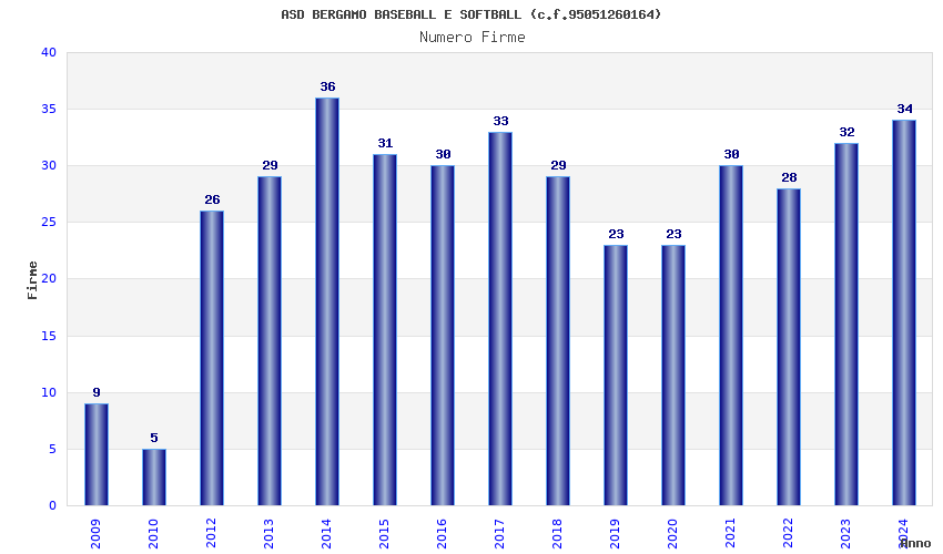 | Anno | Firme | Importi | Media | Naz. | Reg. | Prov. | Comu. |