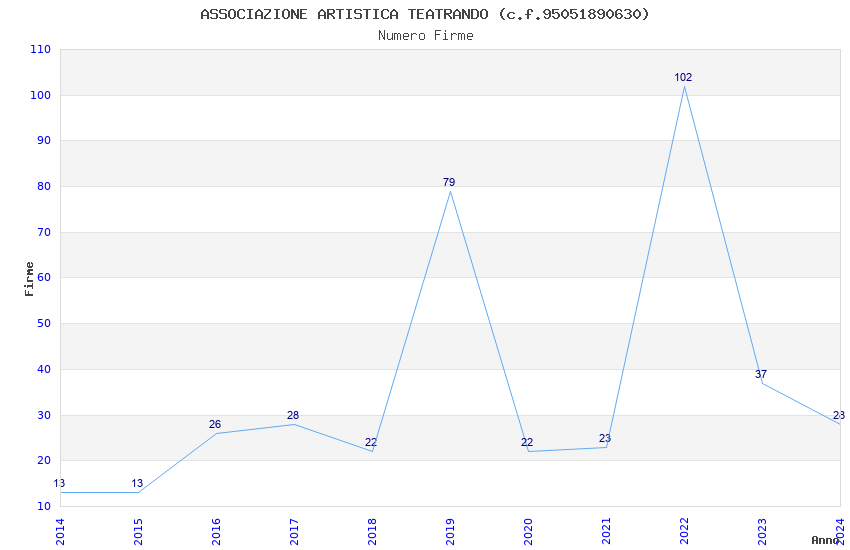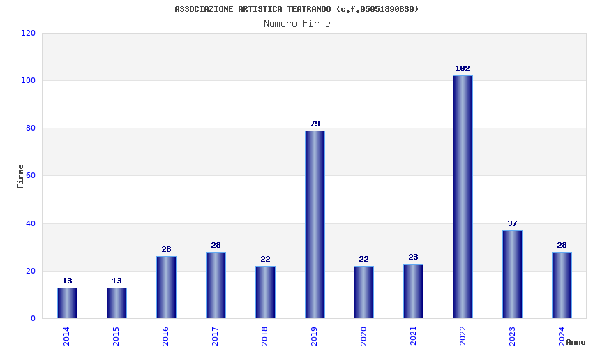 | Anno | Firme | Importi | Media | Naz. | Reg. | Prov. | Comu. |