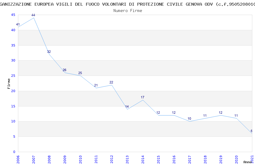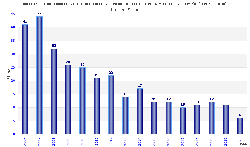 | Anno | Firme | Importi | Media | Naz. | Reg. | Prov. | Comu. |