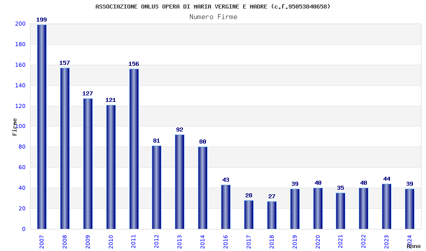 | Anno | Firme | Importi | Media | Naz. | Reg. | Prov. | Comu. |