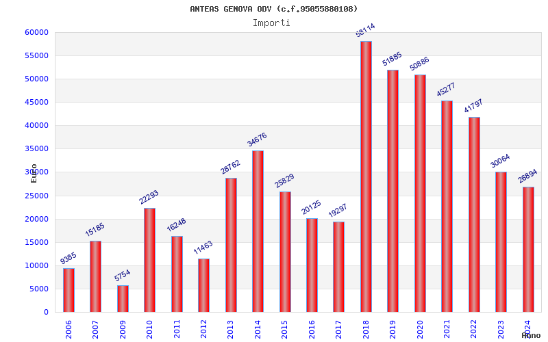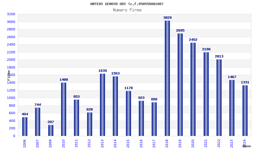 | Anno | Firme | Importi | Media | Naz. | Reg. | Prov. | Comu. |