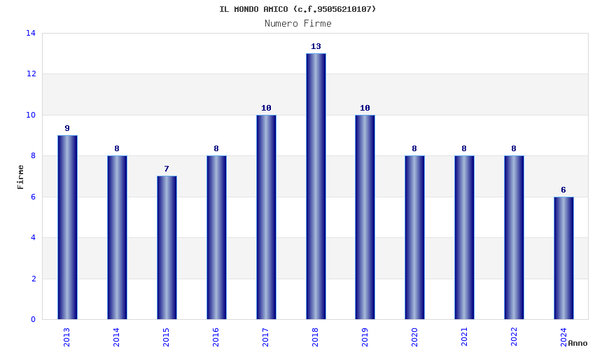 | Anno | Firme | Importi | Media | Naz. | Reg. | Prov. | Comu. |