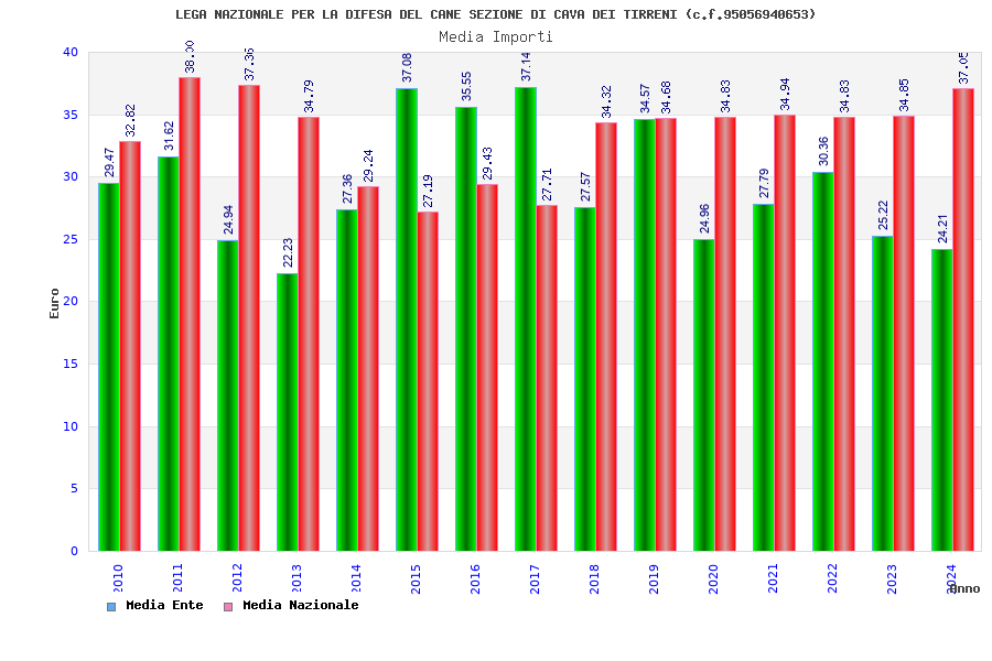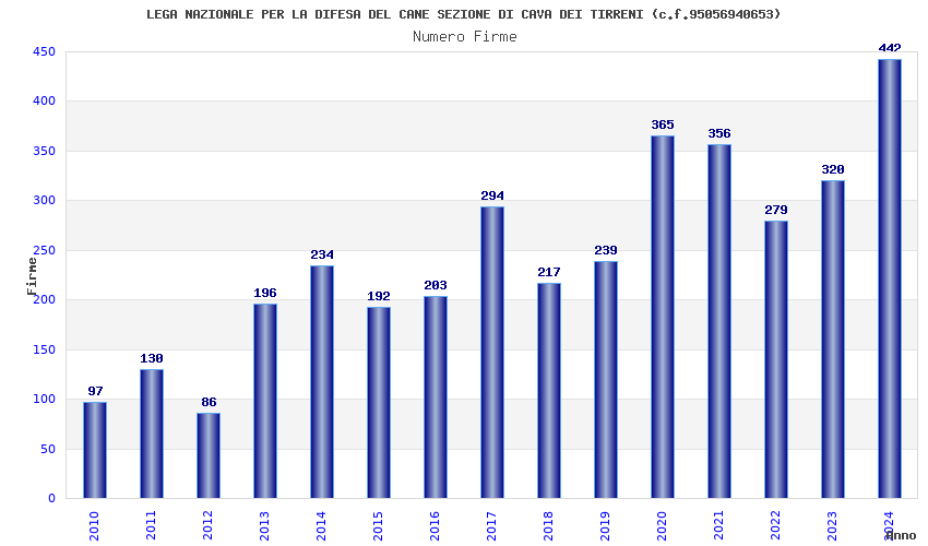 | Anno | Firme | Importi | Media | Naz. | Reg. | Prov. | Comu. |