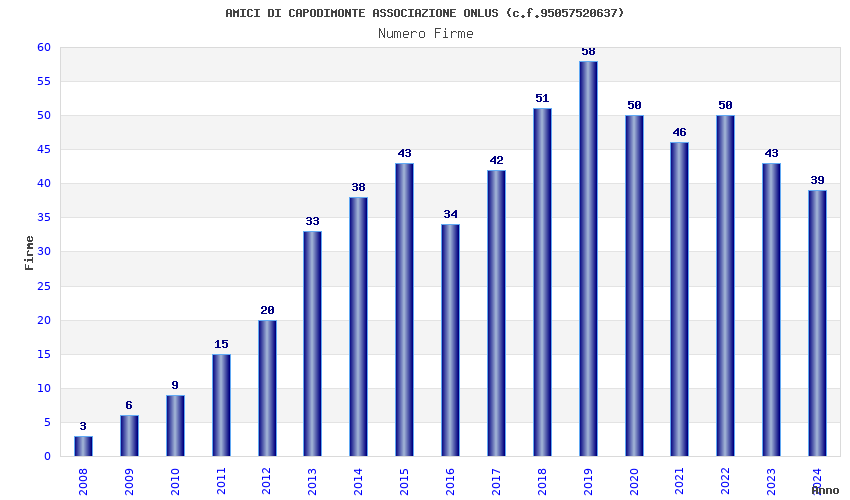 | Anno | Firme | Importi | Media | Naz. | Reg. | Prov. | Comu. |