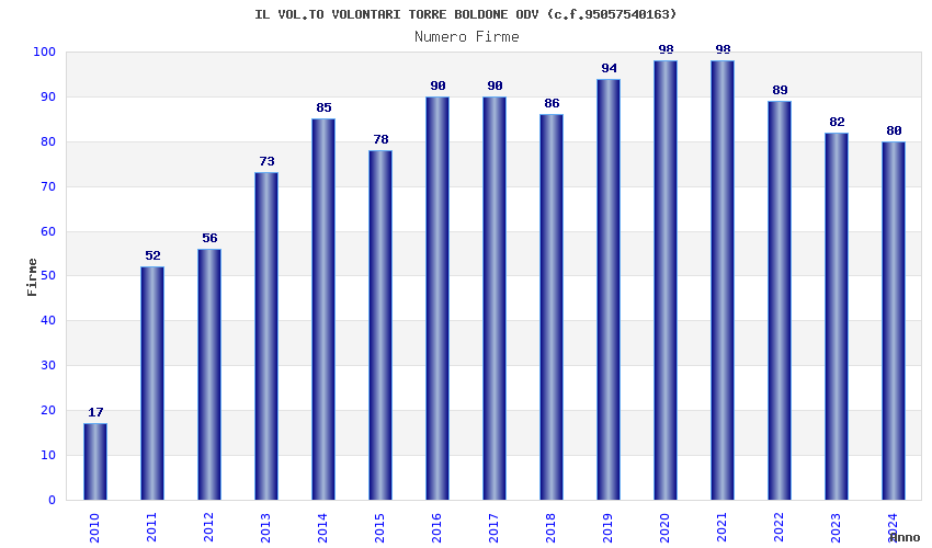 Anno Firme Importi Media Naz. Reg. Prov. Comu.