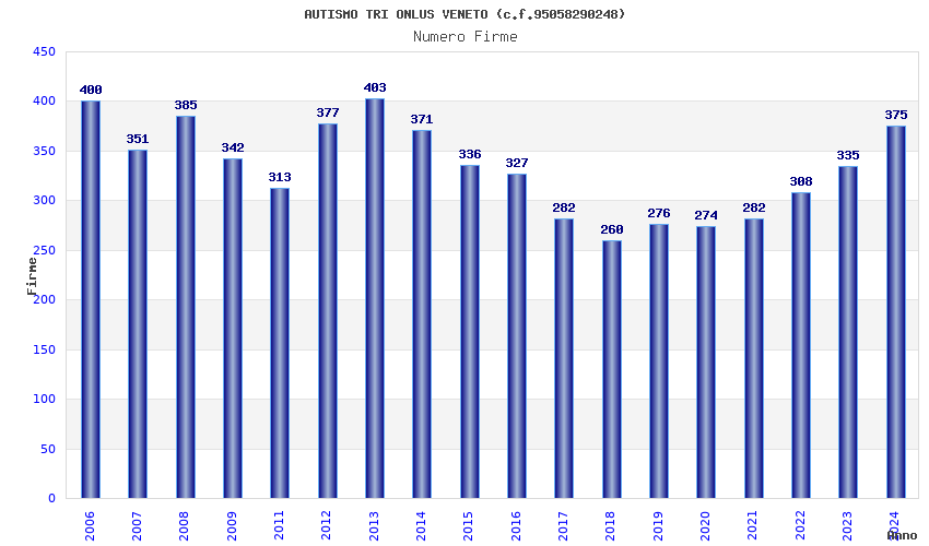 | Anno | Firme | Importi | Media | Naz. | Reg. | Prov. | Comu. |