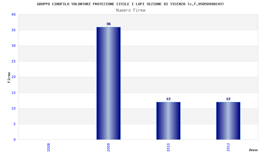 | Anno | Firme | Importi | Media | Naz. | Reg. | Prov. | Comu. |