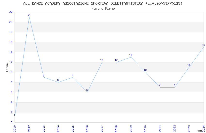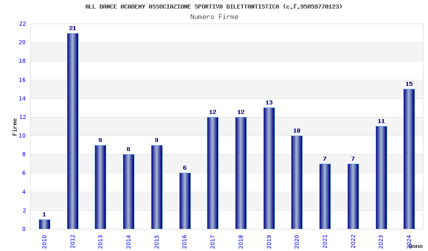 | Anno | Firme | Importi | Media | Naz. | Reg. | Prov. | Comu. |