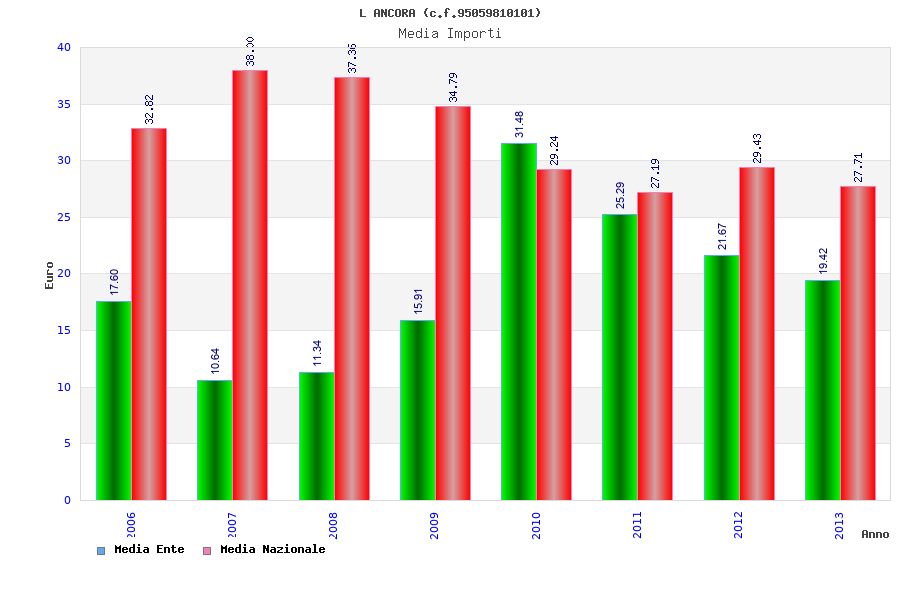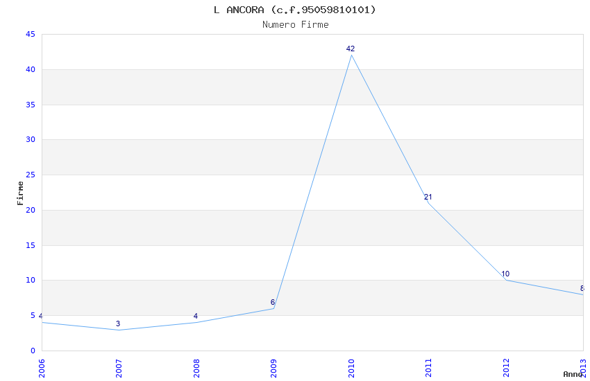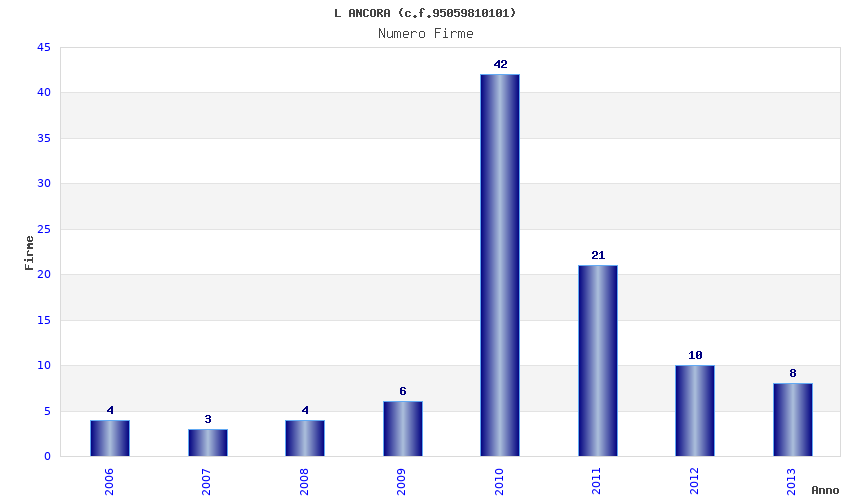 | Anno | Firme | Importi | Media | Naz. | Reg. | Prov. | Comu. |
