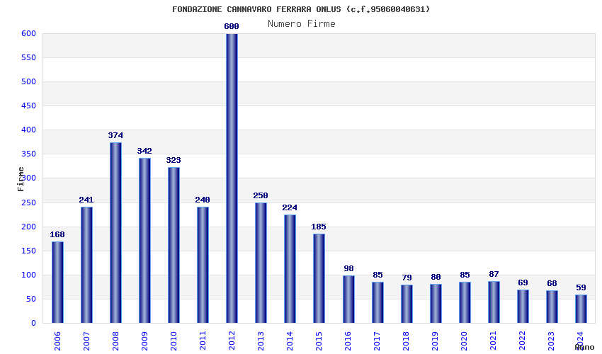 | Anno | Firme | Importi | Media | Naz. | Reg. | Prov. | Comu. |