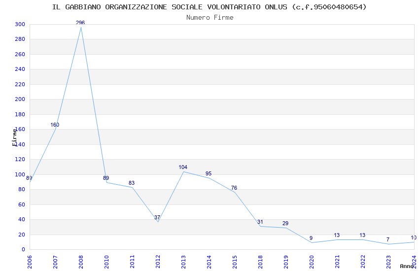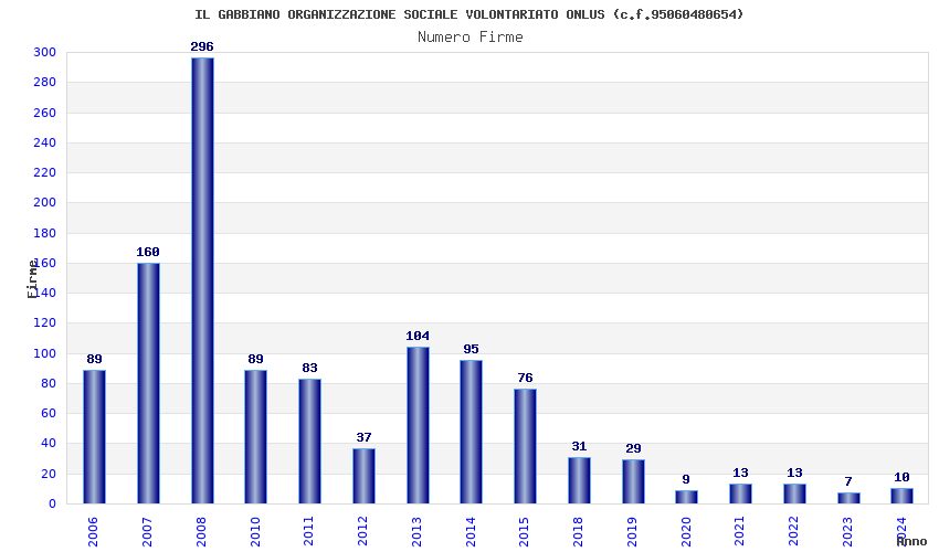 | Anno | Firme | Importi | Media | Naz. | Reg. | Prov. | Comu. |