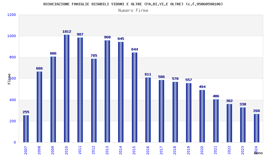 | Anno | Firme | Importi | Media | Naz. | Reg. | Prov. | Comu. |