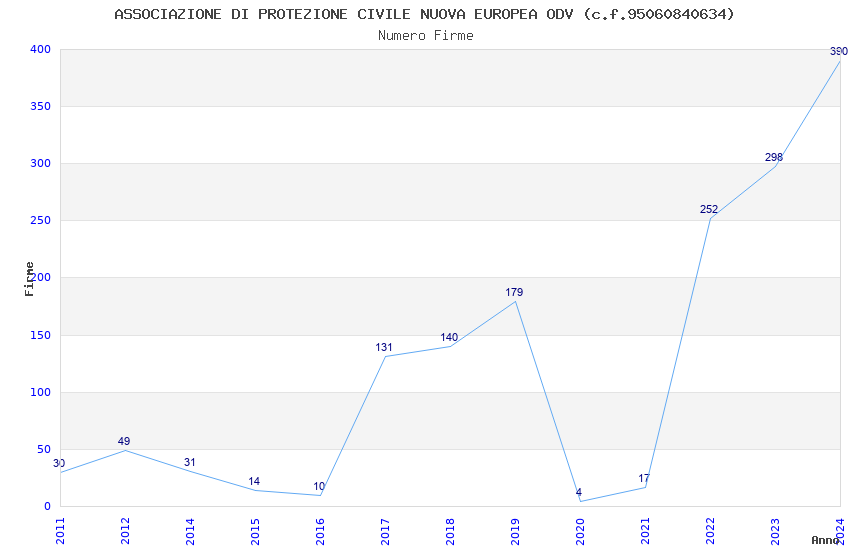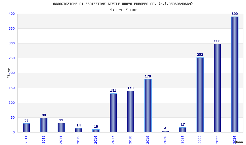 | Anno | Firme | Importi | Media | Naz. | Reg. | Prov. | Comu. |