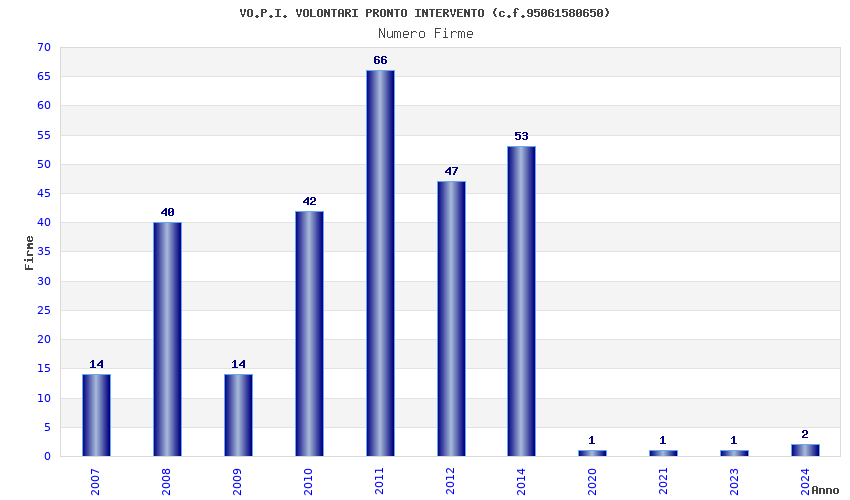 | Anno | Firme | Importi | Media | Naz. | Reg. | Prov. | Comu. |