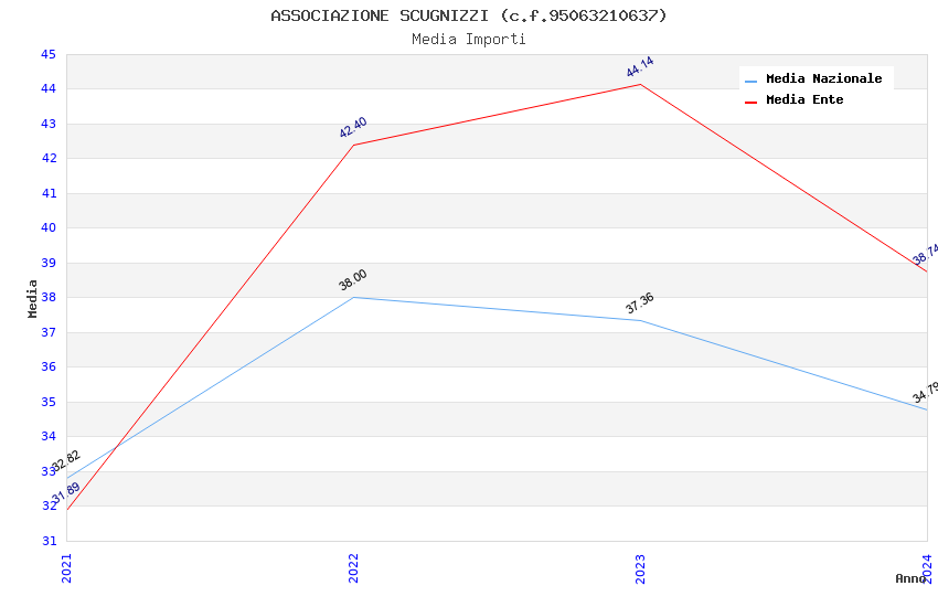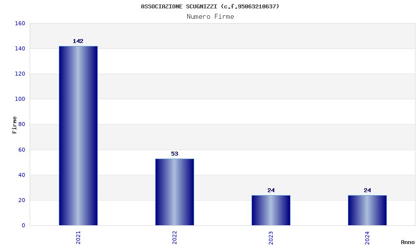 | Anno | Firme | Importi | Media | Naz. | Reg. | Prov. | Comu. |