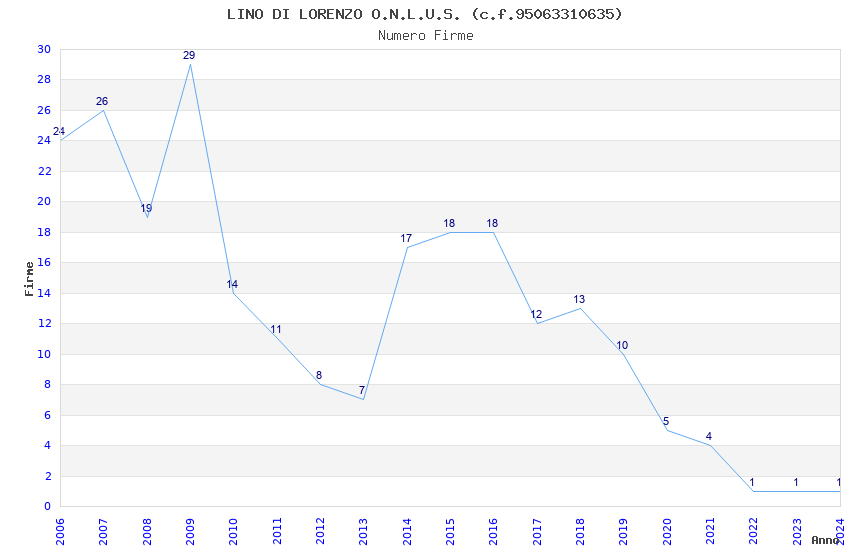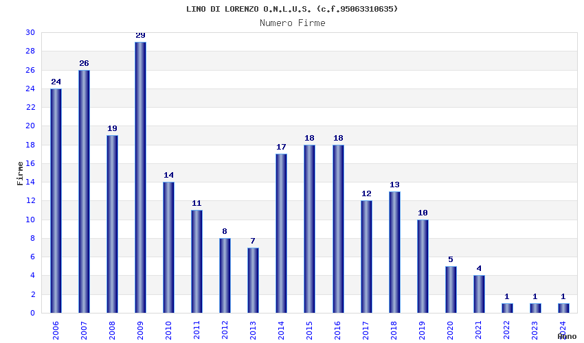 | Anno | Firme | Importi | Media | Naz. | Reg. | Prov. | Comu. |