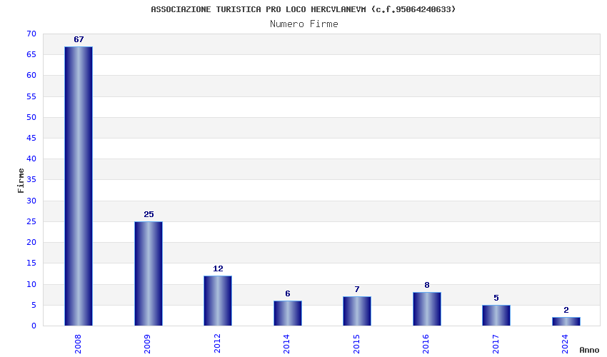 | Anno | Firme | Importi | Media | Naz. | Reg. | Prov. | Comu. |