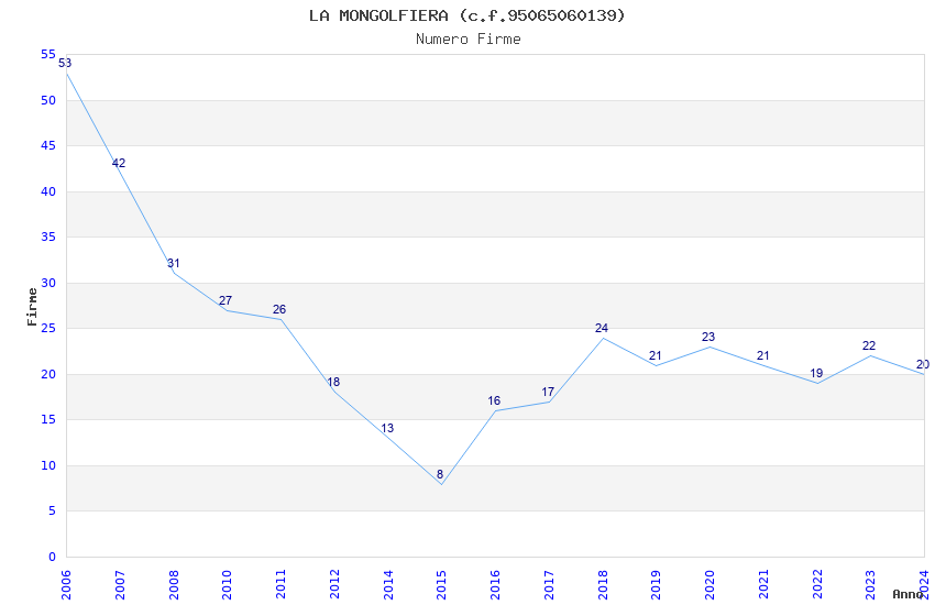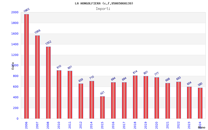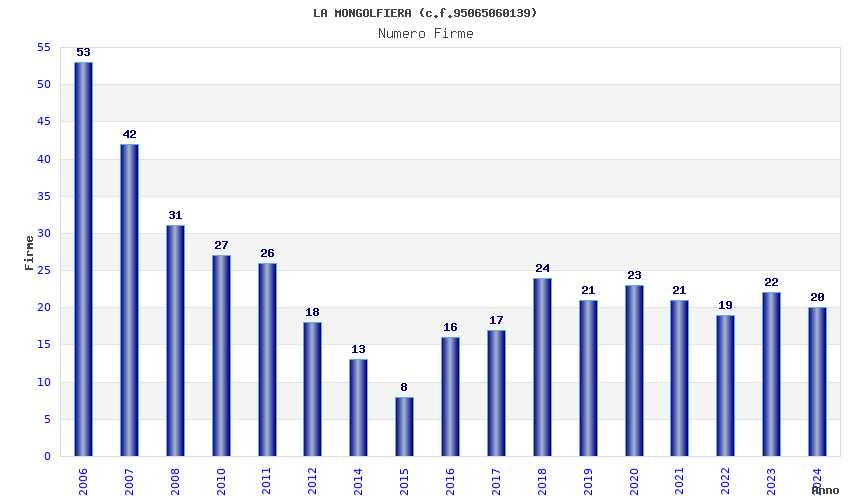 | Anno | Firme | Importi | Media | Naz. | Reg. | Prov. | Comu. |
