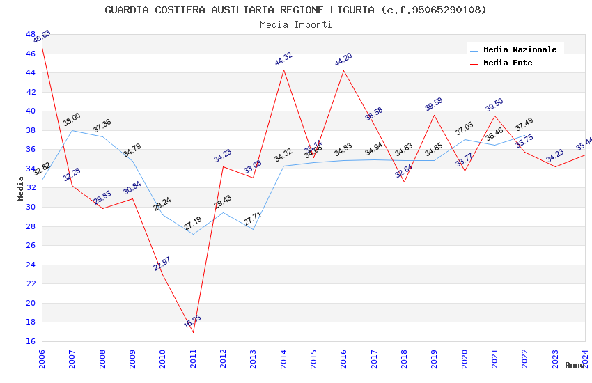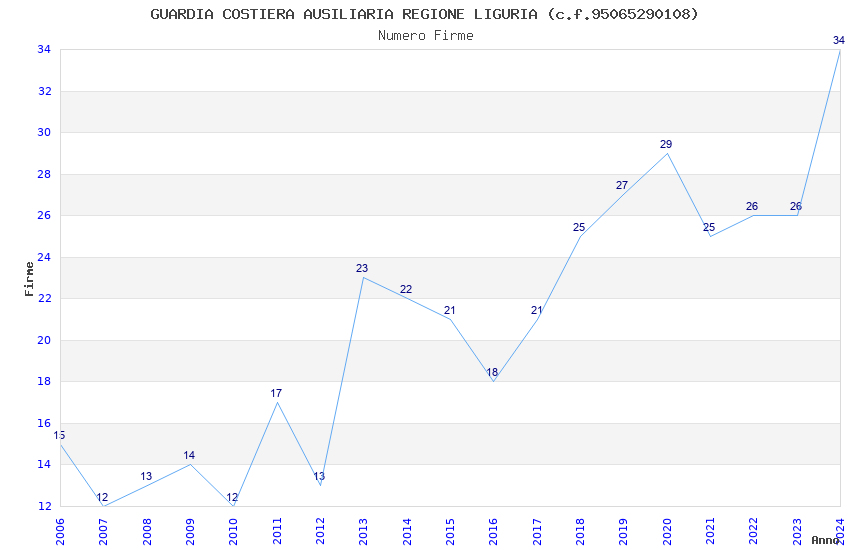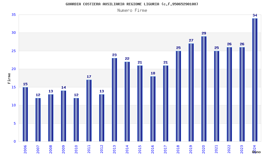 | Anno | Firme | Importi | Media | Naz. | Reg. | Prov. | Comu. |