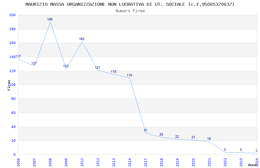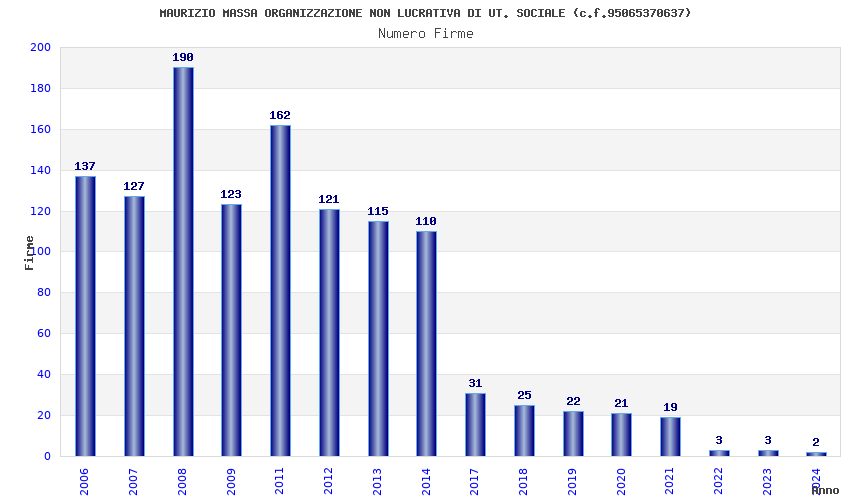 | Anno | Firme | Importi | Media | Naz. | Reg. | Prov. | Comu. |