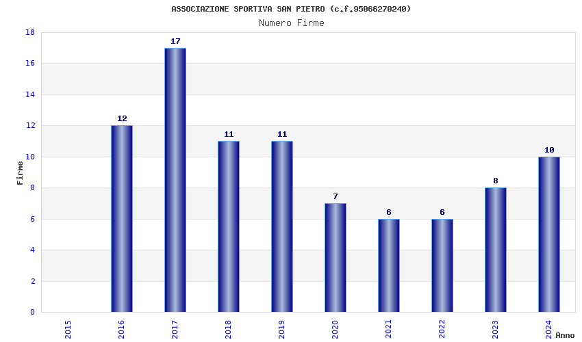 | Anno | Firme | Importi | Media | Naz. | Reg. | Prov. | Comu. |