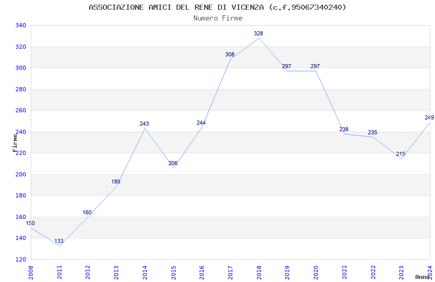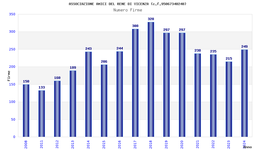 | Anno | Firme | Importi | Media | Naz. | Reg. | Prov. | Comu. |