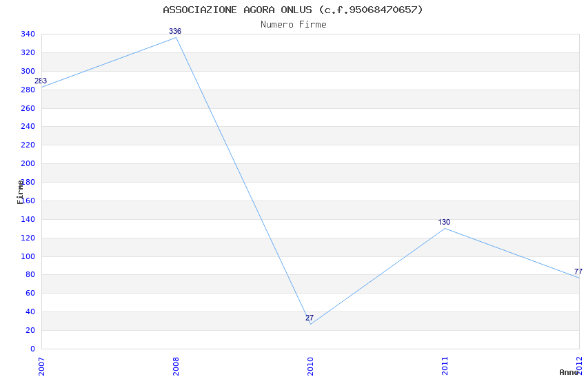 | Anno | Firme | Importi | Media | Naz. | Reg. | Prov. | Comu. |