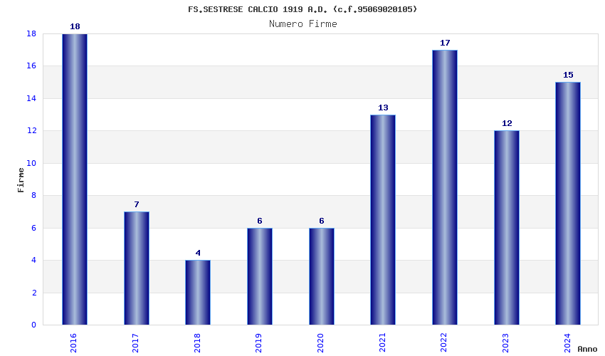 | Anno | Firme | Importi | Media | Naz. | Reg. | Prov. | Comu. |