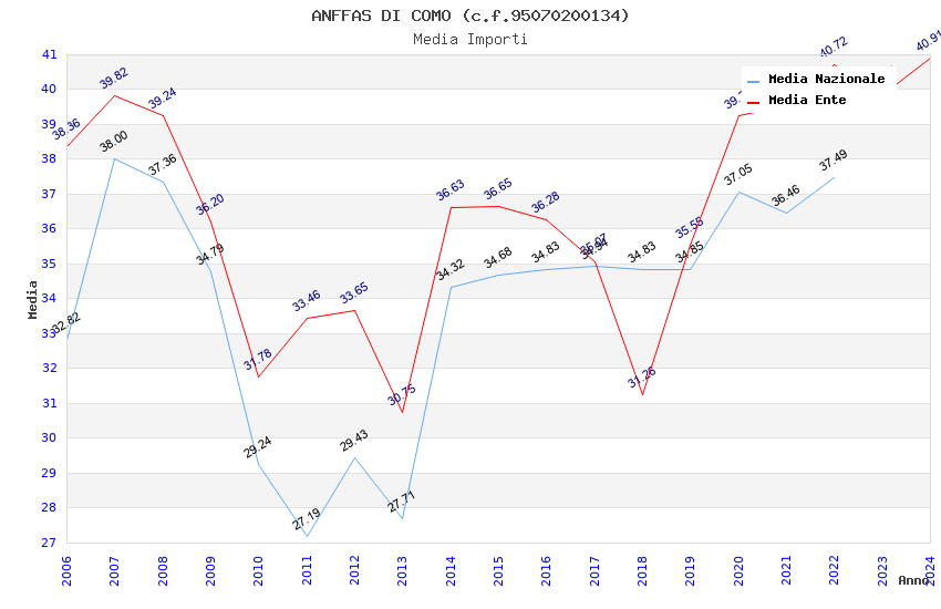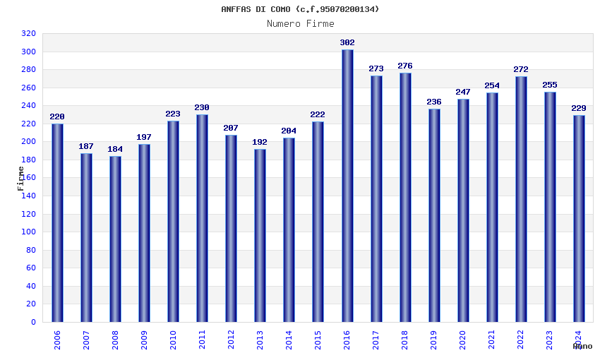 | Anno | Firme | Importi | Media | Naz. | Reg. | Prov. | Comu. |