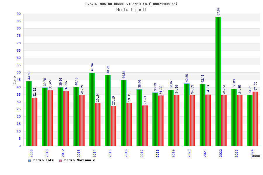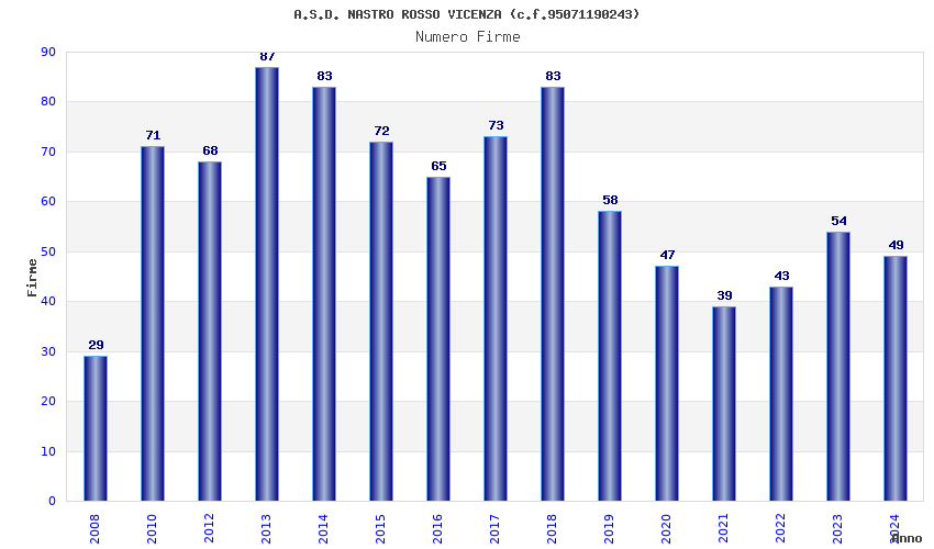 | Anno | Firme | Importi | Media | Naz. | Reg. | Prov. | Comu. |