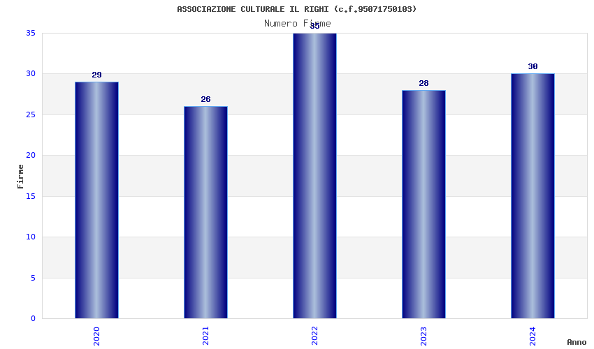 | Anno | Firme | Importi | Media | Naz. | Reg. | Prov. | Comu. |