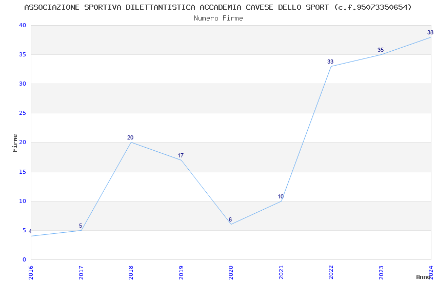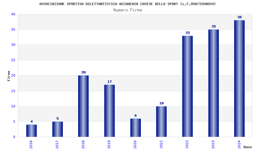 | Anno | Firme | Importi | Media | Naz. | Reg. | Prov. | Comu. |