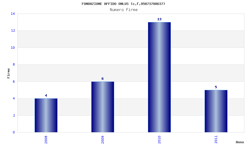 | Anno | Firme | Importi | Media | Naz. | Reg. | Prov. | Comu. |