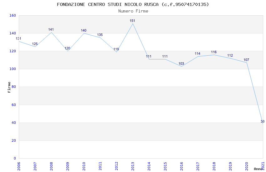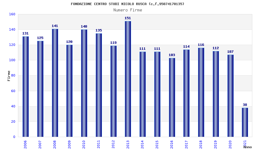 | Anno | Firme | Importi | Media | Naz. | Reg. | Prov. | Comu. |