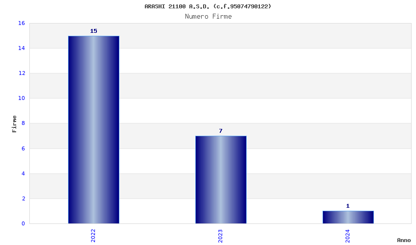 | Anno | Firme | Importi | Media | Naz. | Reg. | Prov. | Comu. |