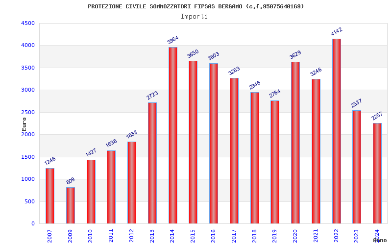 | Anno | Firme | Importi | Media | Naz. | Reg. | Prov. | Comu. |