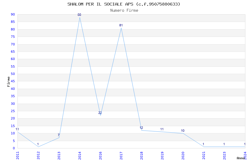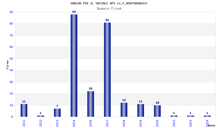 | Anno | Firme | Importi | Media | Naz. | Reg. | Prov. | Comu. |
