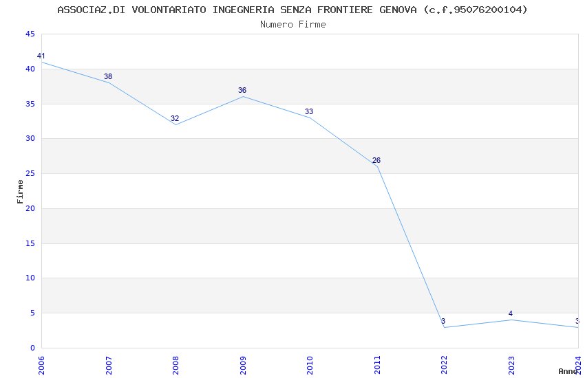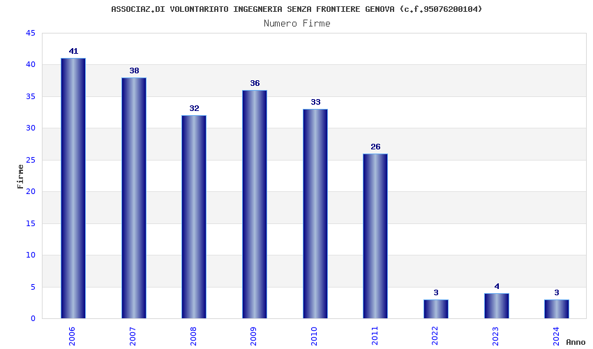 | Anno | Firme | Importi | Media | Naz. | Reg. | Prov. | Comu. |