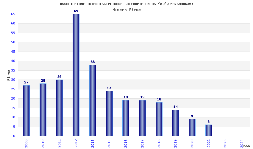 | Anno | Firme | Importi | Media | Naz. | Reg. | Prov. | Comu. |