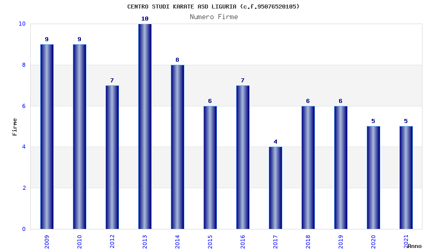 | Anno | Firme | Importi | Media | Naz. | Reg. | Prov. | Comu. |
